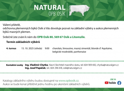 Pozvánka na III. turnus výběrů a aukci 23. června 2025 na OPB Osík