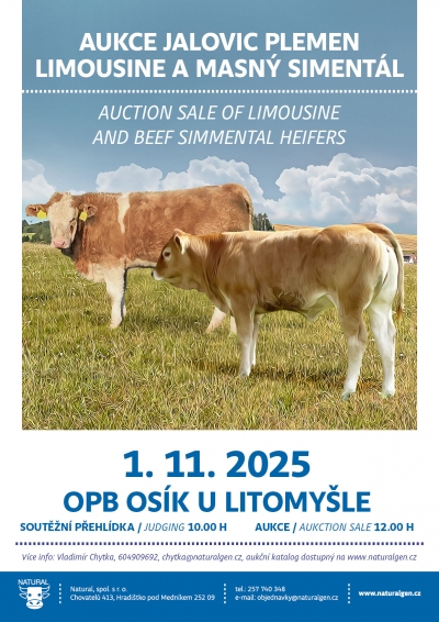 Aukce jalovic limousine a masný simentál 1. listopadu 2025 OPB Osík
