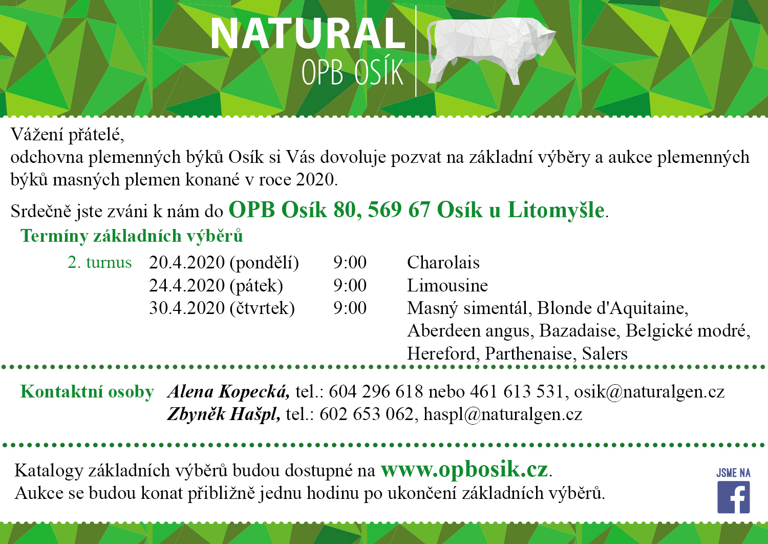 Veškeré informace ohledně býků (fotky, videa, katalogové listy, ceny) jsou již teď na našich stránkách www.opbosik.cz