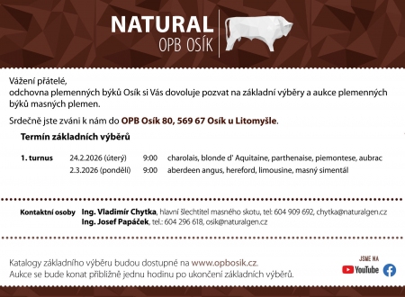 Pozvánka na I. turnus výběrů a aukcí 2026 na OPB Osík